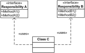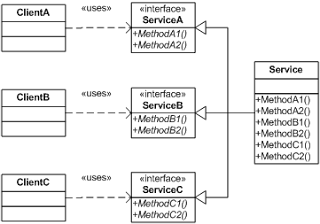 The essence of the principle is quite simple. If you have a class that has several clients, rather than loading the class with all the methods that the clients need, create specific interfaces for each client and multiply inherit them into the class.